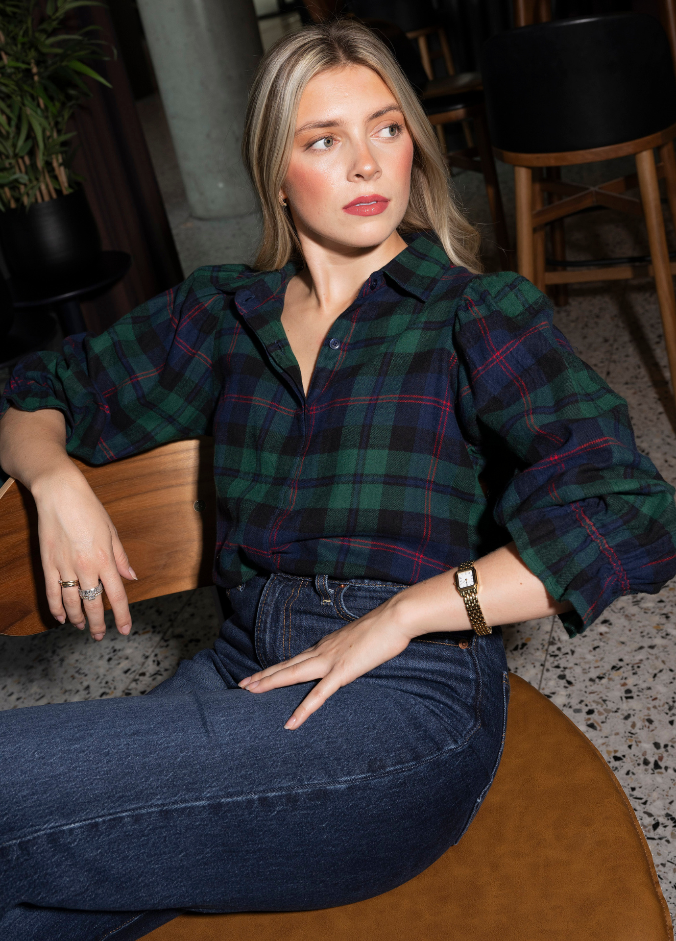 The Amy Shirt boasts comfortable cotton  quality and beautiful feminine details. Ruffles and elastic along the cuffs, along with stylish puff sleeves, make it a superb choice for tucking into a skirt or jeans. A comfortable, true-to-size fit. Choose your usual size.