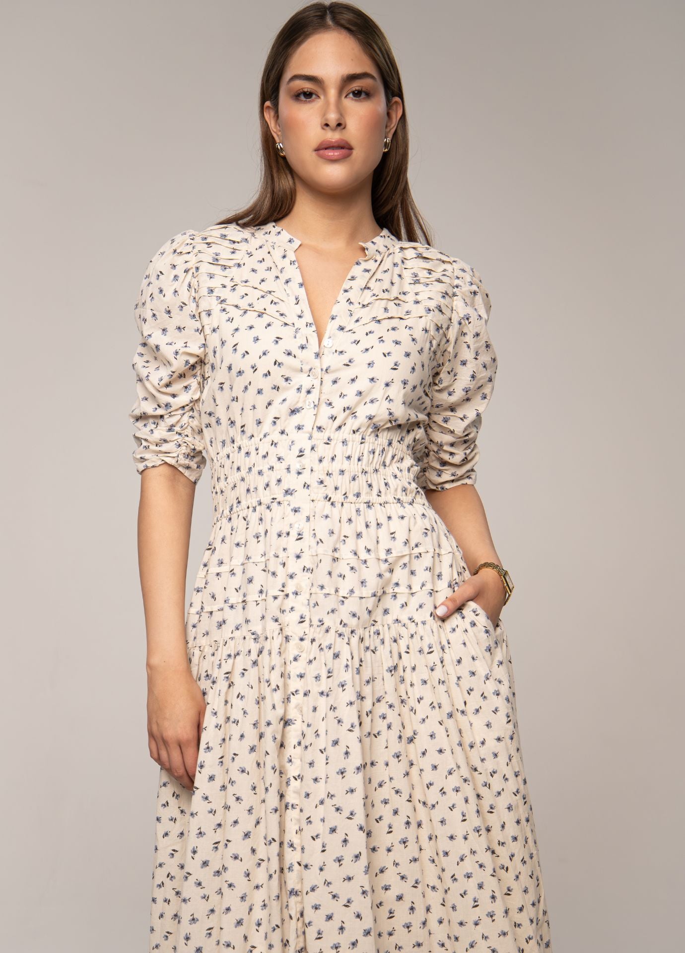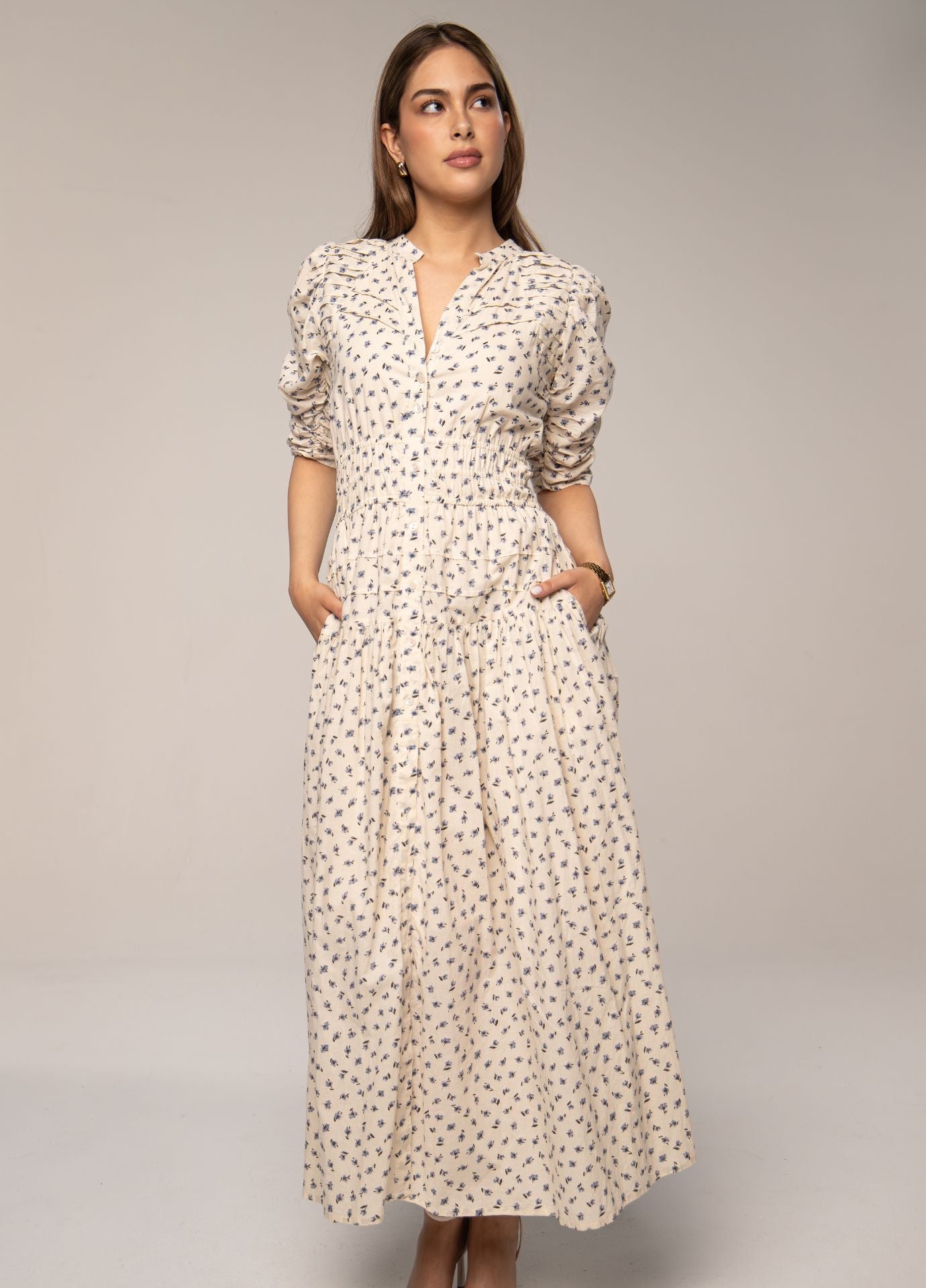 The Fabienne Dress is a feminine and easy-to-wear midi, perfect for both everyday and special moments. Made from light, breathable cotton for a soft and comfortable feel. Designed with a flattering V-neck, soft puff sleeves, and an elastic waist that  enhances your shape while staying comfortable. Finished with practical side pockets.