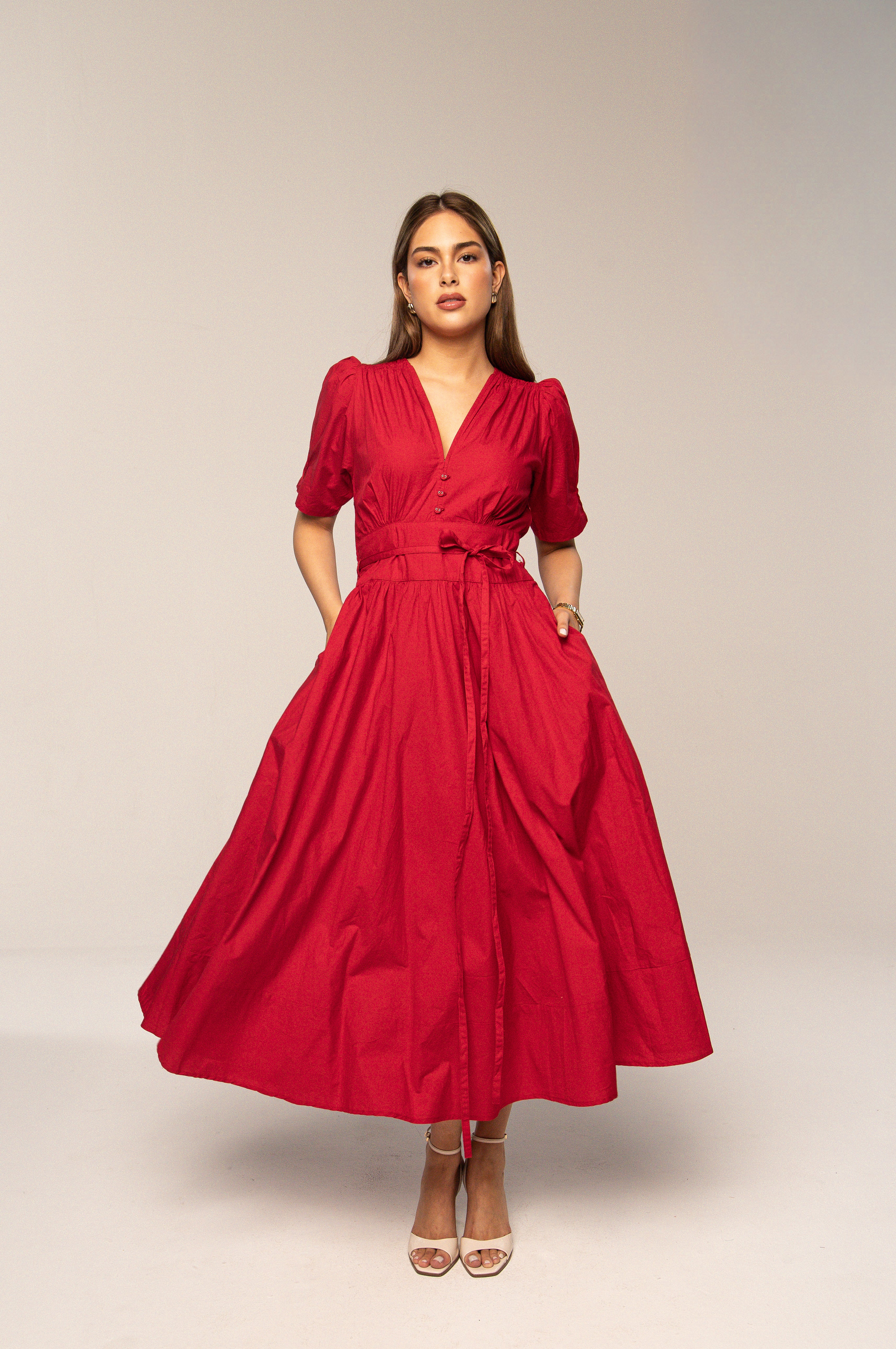Maria Dress City Red Poplin